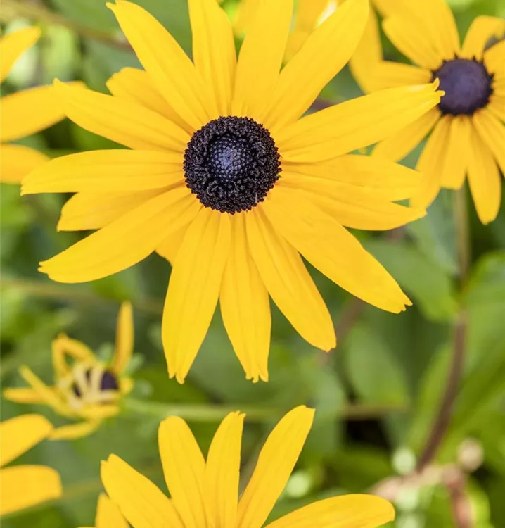 Rudbeckia fulgida var. sullivantii 'Goldsturm' bildet körbchenartige, goldgelbe Blüten ab Juli.
