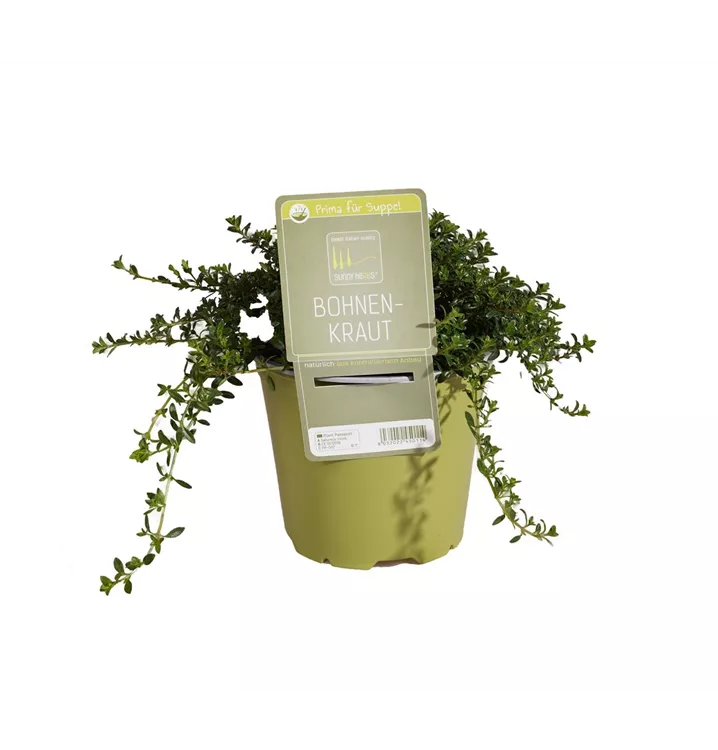 Das Sommer-Bohnenkraut (Satureja hortensis) ist eine Kräuterpflanze mit einem würzigen Geschmack. Seine dunkelgrünen Blätter sind lanzettlich. Für das optimale Wachstum des Sommer-Bohnenkrauts werden ein sonniger Standort und durchlässiger, nährstoffreicher Boden benötigt.