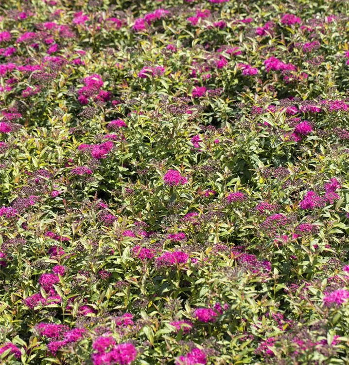 Die Sommerspiere 'Anthony Waterer' (Spiraea japonica) ist ein kompakter, aufrechter, dichter Kleinstrauch, der magentafarbene, in Trugdolden angeordnete Blüten hervorbringt. Sie erscheinen von Juli bis September. Besonders dekorativ ist der rote Jungaustrieb. An einem sonnigen bis halbschattigen Standort mit durchlässigem Boden erreicht sie gewöhnlich eine Höhe von ca. 80 cm und wird ca. 80 cm breit.