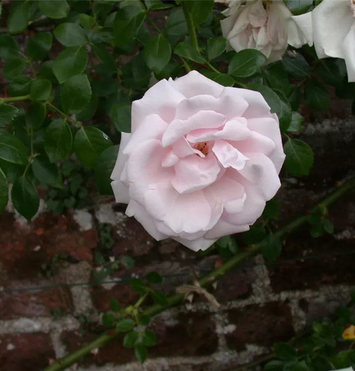 Kletterrose; Blüten: zartrosa, halbgefüllt; Wuchs: