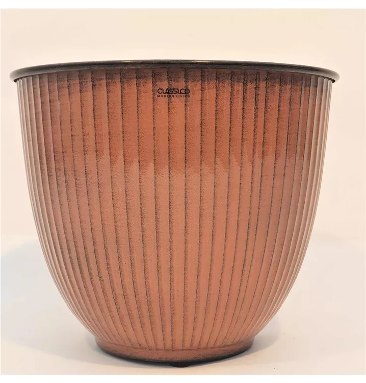 Der Steel-Pot Fat Vintage terra ist ein formschöner Übertopf aus edel lackiertem Stahlblech.