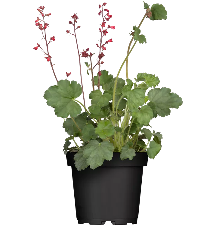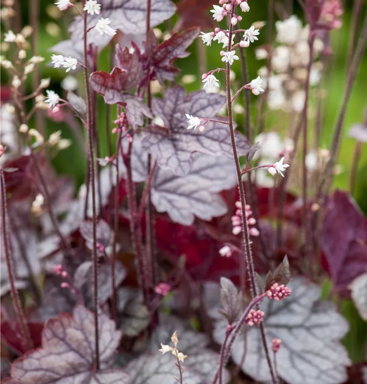 Das Purpurglöckchen (Heuchera) ist eine buschige, wintergrüne Staude mit dekorativen Blättern. An einem sonnigen bis halbschattigen Standort mit durchlässigem, nährstoffreichem Boden erreicht es gewöhnlich eine Höhe von ca. 50 cm und wird ca. 40 cm breit. Das Purpurglöckchen ist gut frostverträglich.