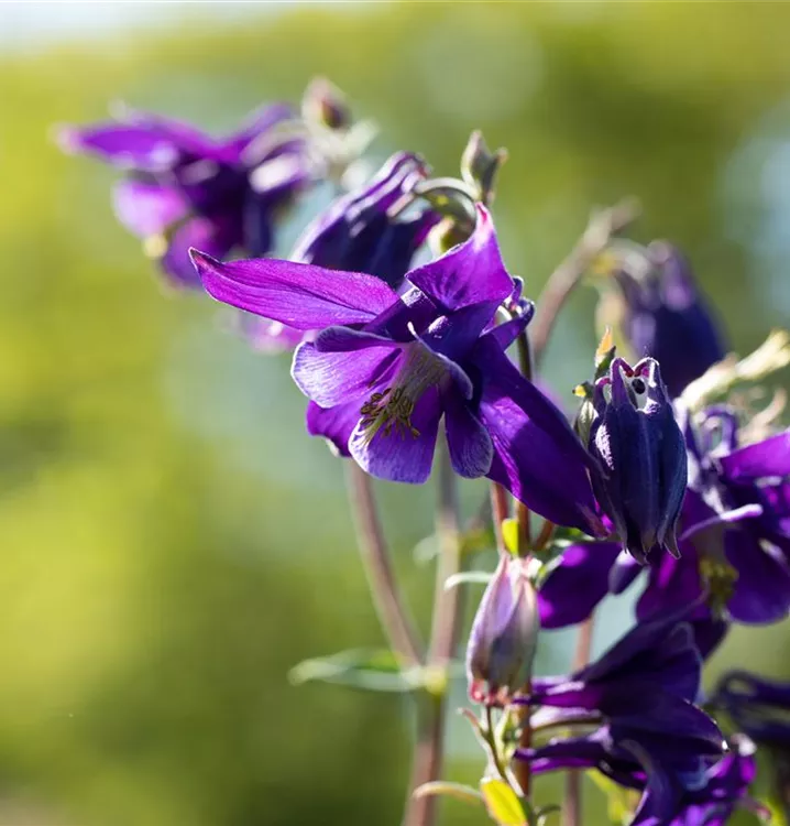 Die Kurzspornige Akelei (Aquilegia vulgaris) ist eine aufrechte Staude, die, je nach Sorte, glockenförmige Blüten in verschiedenen Farben bildet. An einem sonnigen bis halbschattigen Standort mit durchlässigem, humosem, lockerem, nährstoffreichem Boden erreicht sie gewöhnlich eine Höhe von ca. 60 cm und wird ca. 30 cm breit. Die Kurzspornige Akelei ist gut frostverträglich.