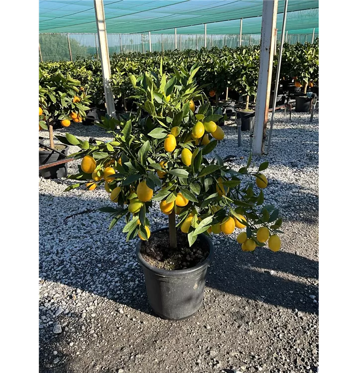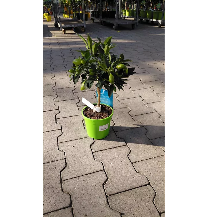 Der Limequat (Citrus x floridana) ist eine sehr beliebte Kübelpflanze, deren gelben, runden Früchte einen süßen, erfrischenden Geschmack haben. Das Fruchtfleisch ist saftig. Seine dekorativen Blüten sind radförmig und erscheinen von März bis Mai. Sie verströmen einen starken Duft. Verwenden Sie bevorzugt die spezielle Kübelpflanzenerde, denn sie verdichtet sich über längere Zeit nicht.