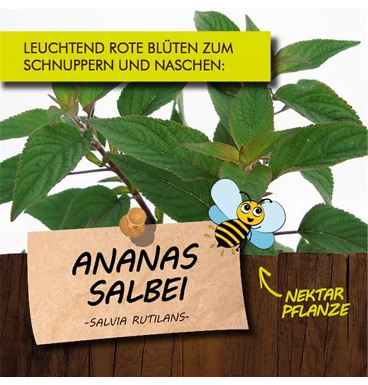 Der Ananas-Salbei (Salvia elegans) ist eine stark duftende Kräuterpflanze mit einem aromatischen Geschmack. Seine mittelgrünen Blätter sind lanzettlich. Für das optimale Wachstum des Ananas-Salbeis werden ein sonniger Standort und durchlässiger, nährstoffreicher Boden benötigt. Mit ihren roten Blüten, ihrem fruchtigen Aroma und dem herrlichen Duft sollte sie in keinem Garten fehlen.