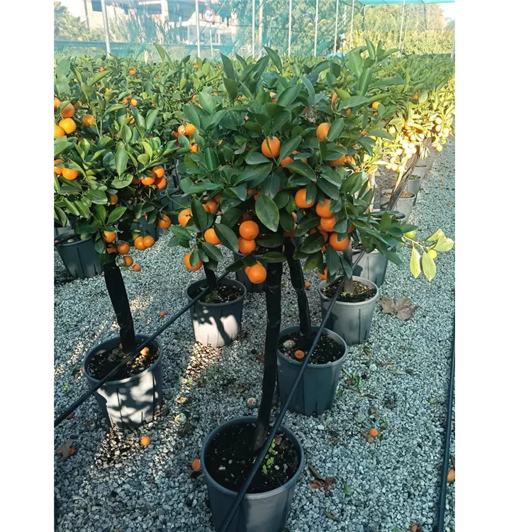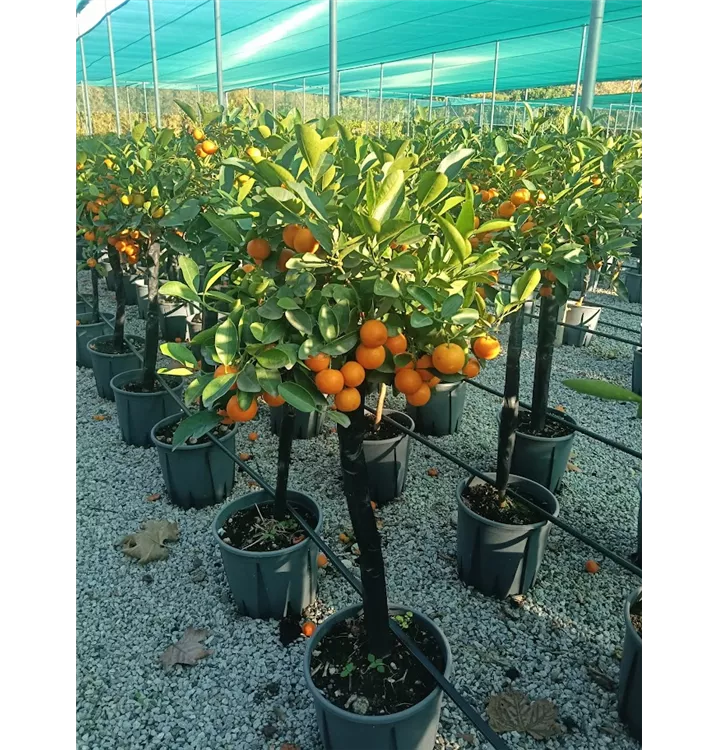 Citrus madurensis bildet goldgelbe Früchte mit einem exotischen Geschmack. Reifezeit ab Dezember.