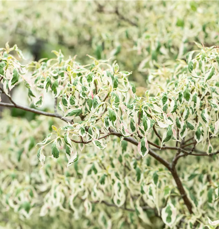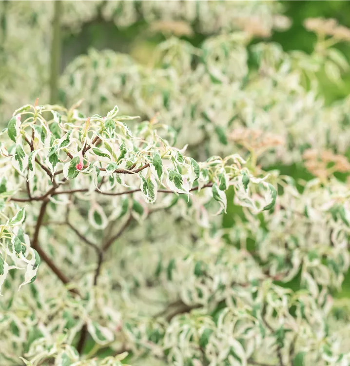 Der Niedrige weißbunte Etagen-Hartriegel 'Argentea' weist eine gute Frosthärte auf.