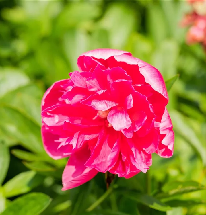 Die Bauerngarten-Pfingstrose 'Rosea Plena' (Paeonia officinalis) ist eine aufrechte, horstbildende Staude, die von Mai bis Juni rosafarbene, schalenförmige Blüten mit einem angenehmen Duft bildet. An einem sonnigen Standort mit durchlässigem, nährstoffreichem Boden erreicht sie gewöhnlich eine Höhe von ca. 80 cm und wird ca. 80 cm breit. Die Bauerngarten-Pfingstrose 'Rosea Plena' ist gut frostverträglich.