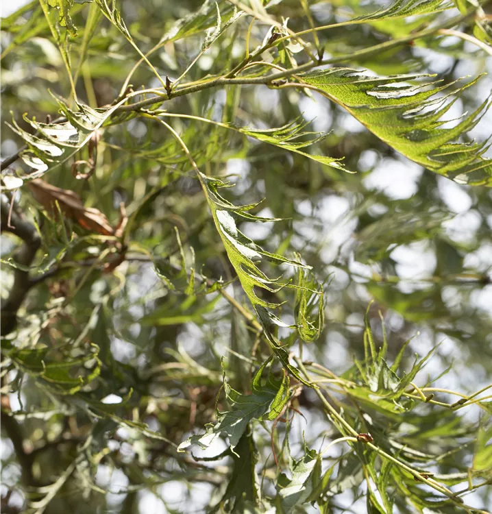 Hoher Blattschmuckwert. Die sommergrünen Blätter der Kaisererle 'Imperialis' sind dunkelgrün, tief geschlitzt, wechselständig. Diese sind etwa 4 - 10 cm groß.