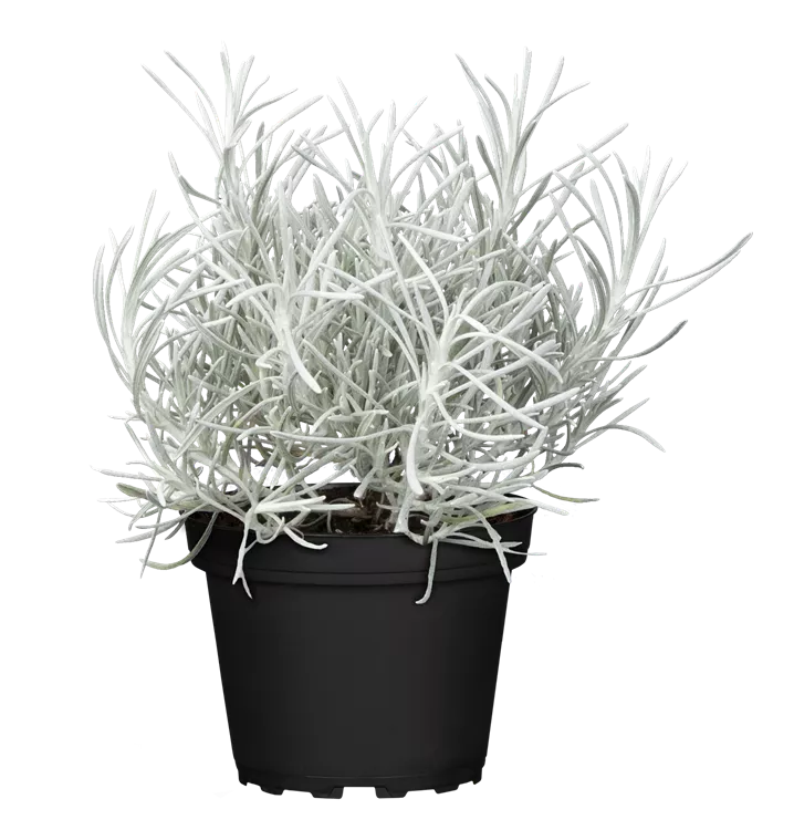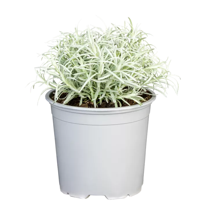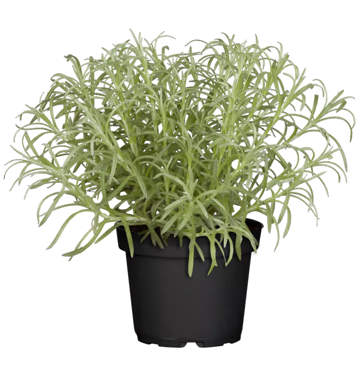 Zum Verzehr geeignet. Die wintergrünen Blätter des Currykrauts sind silbergrau, lanzettlich.