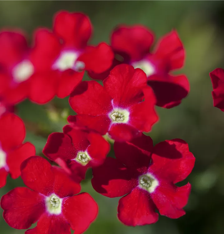 Die Verbena-Hybride (Verbena) ist eine beliebte, pflegeleichte Pflanze für den Balkon, die während der gesamten Saison unzählige blaue, rote oder weiße Blüten bildet. Ein sonniger Standort und ein durchlässiges Substrat werden bevorzugt. Mit ihrem dichten Wuchs passt die Verbena-Hybride besonders gut in Blumenampeln und hängende Pflanzkörbe.