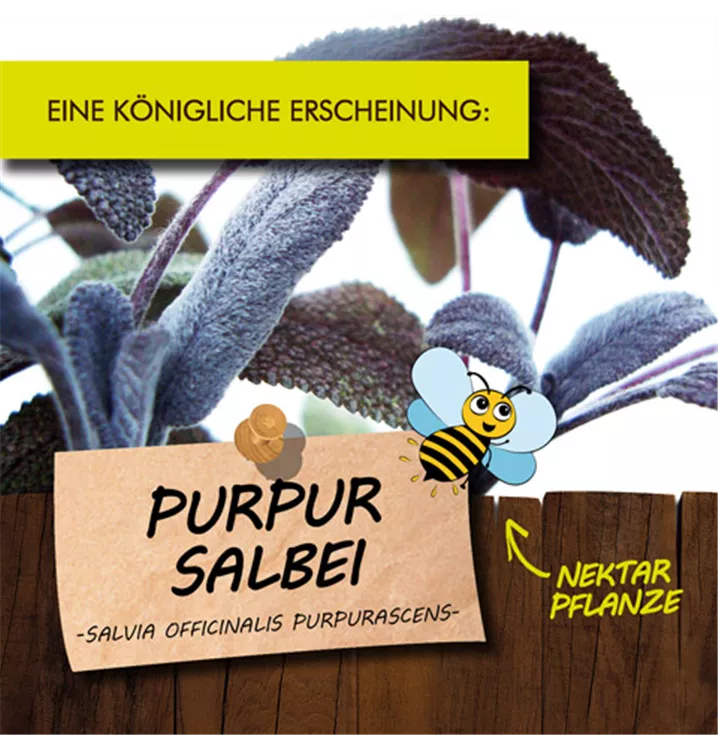 Wichtige Pflanze für Küche und Medizin. Mit seinen dunklen purpurfarbenen Blätter ist dieser Salbei eine auffällige Erscheinung in jedem Garten. Während der Schwangerschaft und Stillzeit meiden!