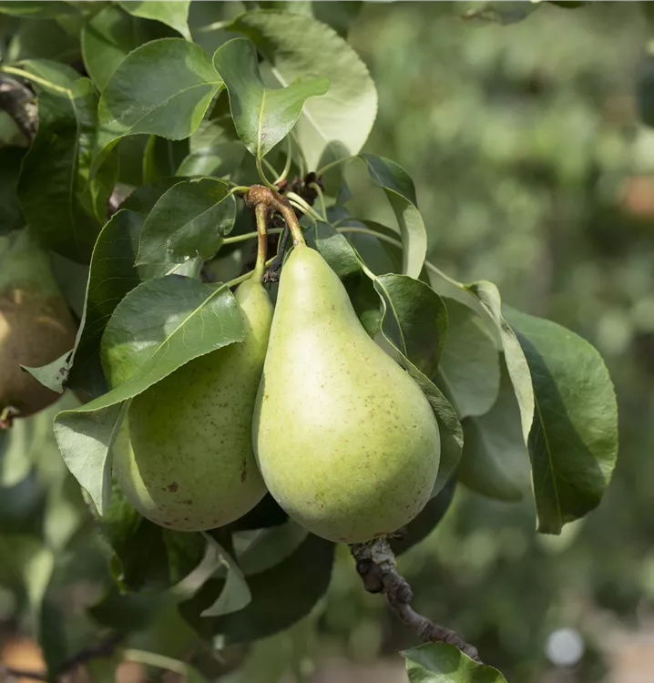 Die Novemberbirne (Pyrus communis) bildet grüngelbe, weiche und saftige Früchte. Sie haben einen süßen, aromatischen Geschmack. Für eine ertragreiche Ernte ab Oktober schaffen lockerer, lehmiger Boden und ein sonniger bis halbschattiger Standort optimale Bedingungen. Ihre weißen Blüten sind eine schöne Erscheinung. Die Novemberbirne wird mit ihrem kegelförmigen Wuchs etwa 15 m hoch und 10 m breit.