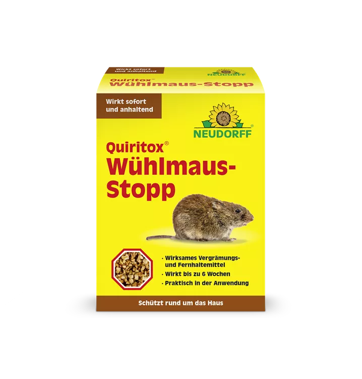 Schäden durch Wühlmäuse sind ärgerlich. Sie können die Nager aber ganz einfach vertreiben. Wühlmäuse reagieren empfindlich auf das im Granulat enthaltene Eukalyptus-Öl. Mit dem beiliegenden Dosierlöffel wird das bis zu 6 Wochen wirksame Granulat einfach in den Wühlmausgang gestreut.