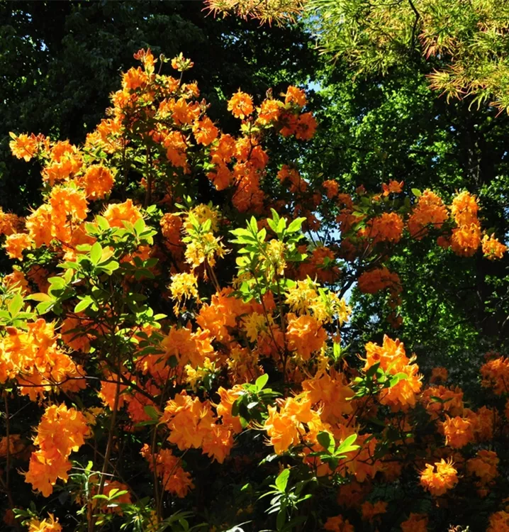 Die Sommergrüne Azalee 'Klondyke' setzt schöne Akzente gemeinsam mit: