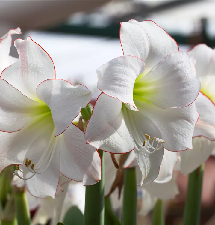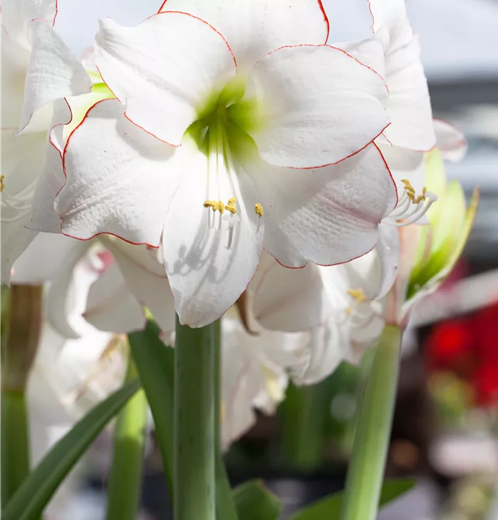 Amaryllis 'Picotee', weiß, rot umrandet