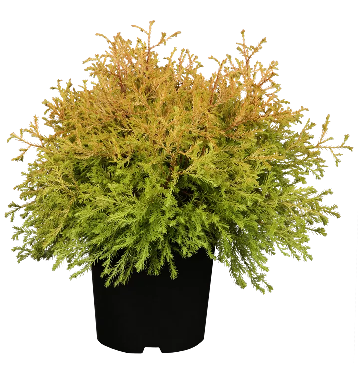 Zierlich wachsende Kegelform, Belaubung moosartig,
