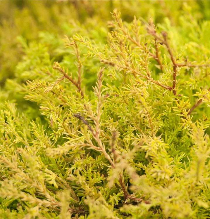 Der Lebensbaum 'Rheingold' (Thuja occidentalis) ist ein Strauch, welcher eiförmig wächst und gewöhnlich eine Höhe von ca. 5 m und eine Breite von ca. 4 m erreicht. Seine schuppenförmigen Blätter haben eine goldgelbe Färbung. Sie verwandeln sich im Winter in ein schönes Bronze. Dekorative braune Zapfen zieren Thuja occidentalis 'Rheingold' ab Oktober. Dieses Gehölz ist gut frostverträglich.Er bevorzugt kalkhaltigen, nährstoffreichen, sandigen, lehmigen Boden in sonniger bis halbschattiger Lage.