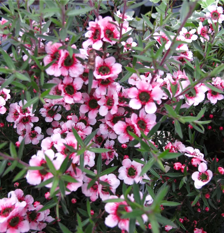 Die Südseemyrte (Leptospermum scoparium) ist eine sehr beliebte, immergrüne Kübelpflanze. Ihre dekorativen Blüten erscheinen von April bis Mai. Der Standort sollte möglichst sonnig sein. Eine durchlässige Erde ist dabei ideal. Bei günstigen Bedingungen erreicht die Südseemyrte eine Höhe von ca. 2 m und wird bis zu 1,7 m breit.