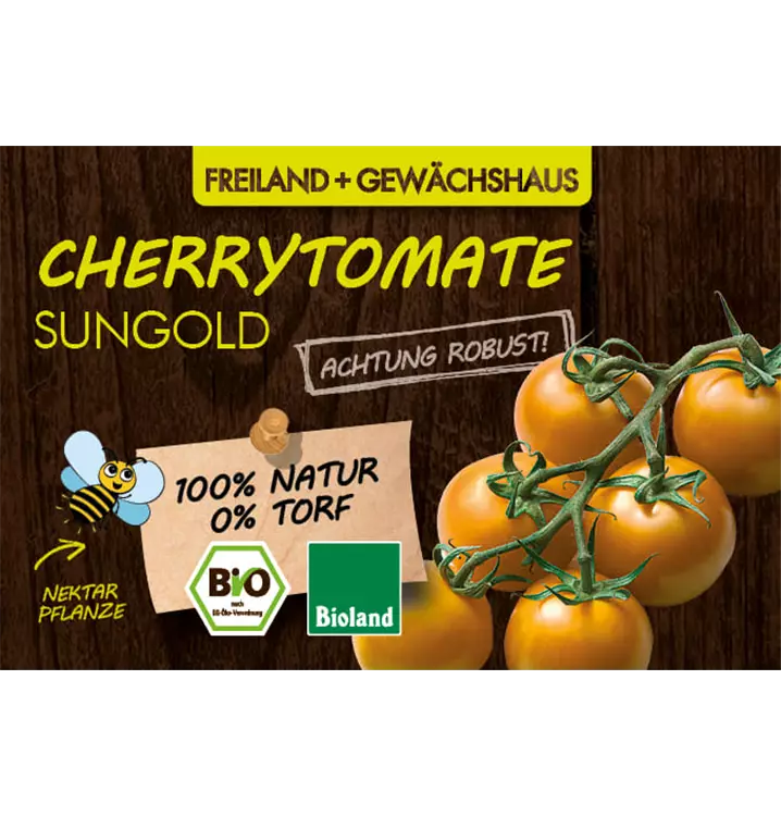 • Cocktailtomate CHERRY SUNGOLD: Kundenumfragen haben ergeben, dass diese Sorte die wohlschmeckendste Tomate überhaupt ist. In Kaskaden angeordnete, mundgerechte, tieforangene Früchte. Trotz der frühen Erntezeit ein sehr guter Ertrag, und für das Freiland und Gewächshaus aber auch für den Balkon und Terrasse geeignet. Neben dem wunderbaren Geschmack hat diese Sorte noch zwei weitere Vorteile: Ihre dünne Haut und die Fähigkeit, über einen langen Zeitraum erntereif zu bleiben. Höhe: 180cm