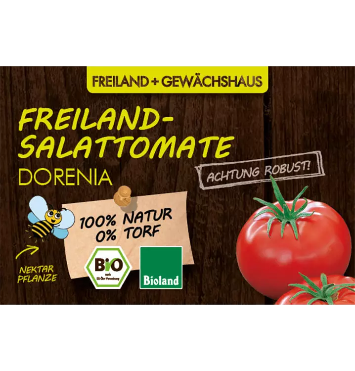 • FREILAND SALATTOMATE DORENIA: Besonders Robust gegen die Kraut- und Braunfäule. Leuchtend-rote, kompakte und vor allen Dingen schnittfeste Früchte zeichnen diese Sorte ganz besonders aus. Der Geschmack ist ausgewogen fruchtig-süß und voller Aroma. Eine Tomate für Genießer. Höhe: 150cm