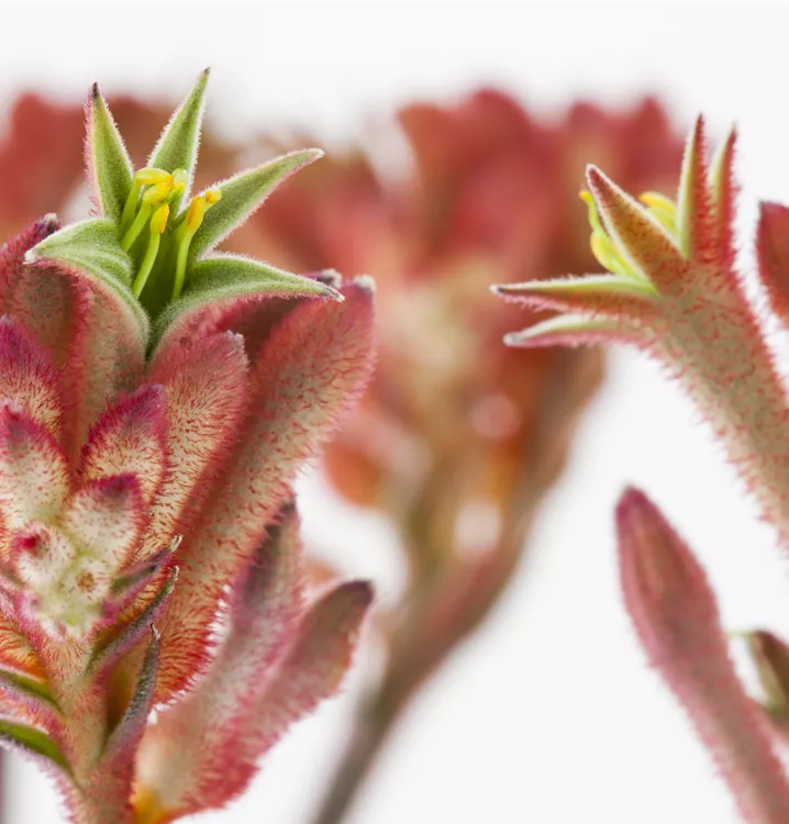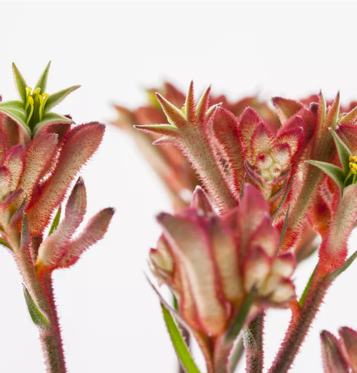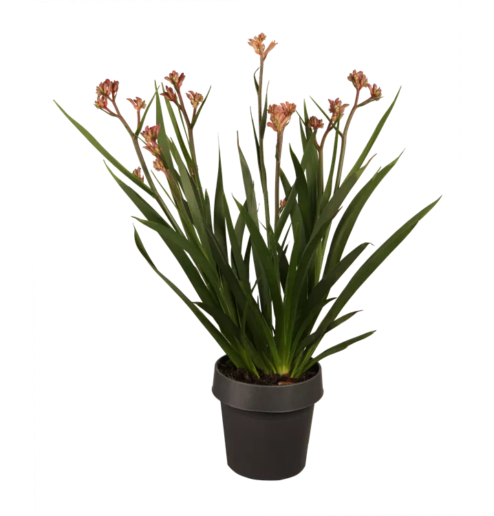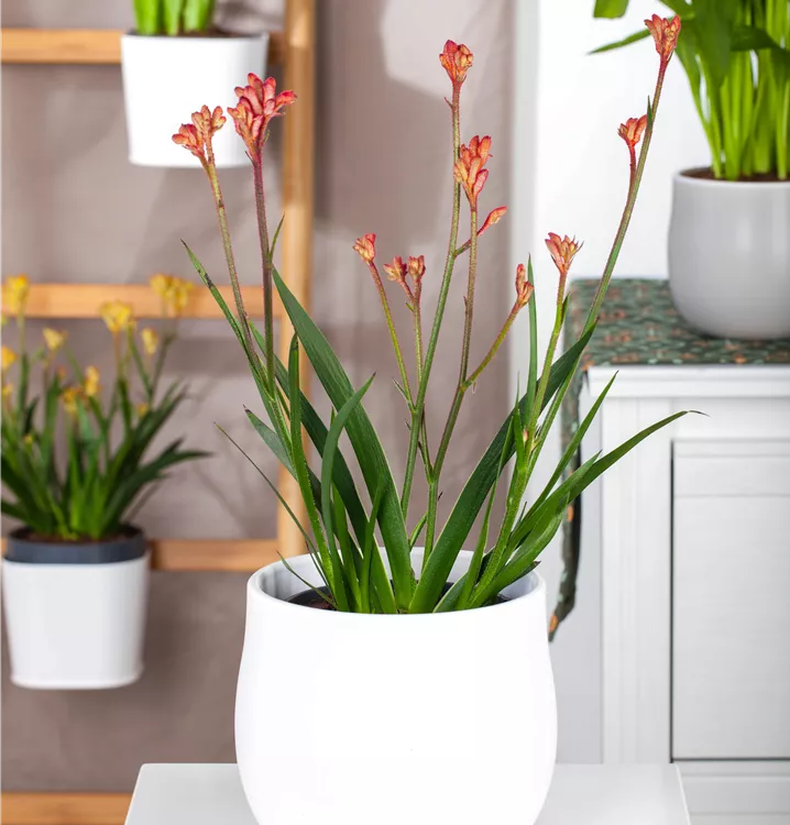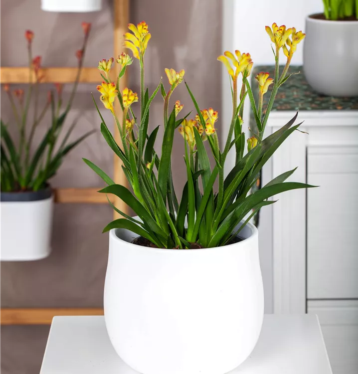 Die Kängurupfote (Anigozanthos flavidus) ist eine beliebte Pflanze für den Balkon, die während der gesamten Saison unzählige gelbe, orangefarbene oder rote Blüten bildet. Ein sonniger bis halbschattiger Standort und ein durchlässiges Substrat werden bevorzugt.