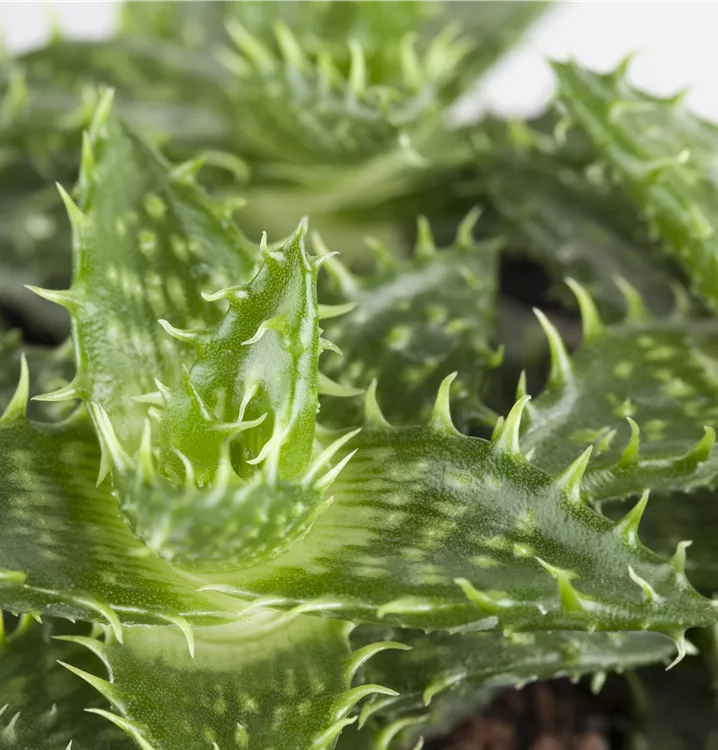 Die Aloe (Aloe) zählt zu den pflegeleichten Pflanzen und besitzt dickfleischige Blätter. Diese rosettenartige und sukkulente Pflanze gedeiht am besten an einem sonnigen Standort.
