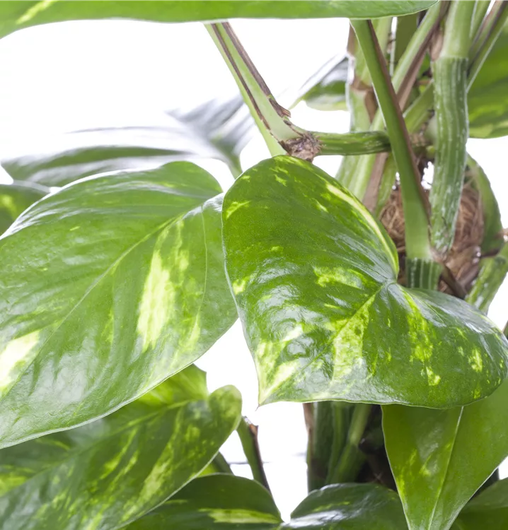 Die Gefleckte Efeutute (Epipremnum pinnatum) trägt gelbbunte, mittelgrüne, weißbunte, spitz eiförmige Blätter. Diese kletternde und rankende Pflanze gedeiht am besten an einem sonnigen bis halbschattigen Standort.