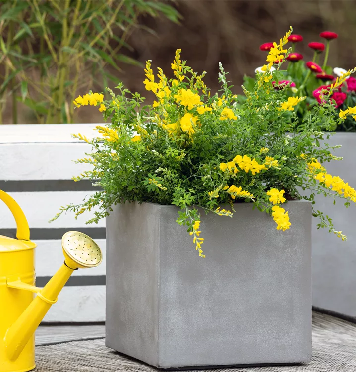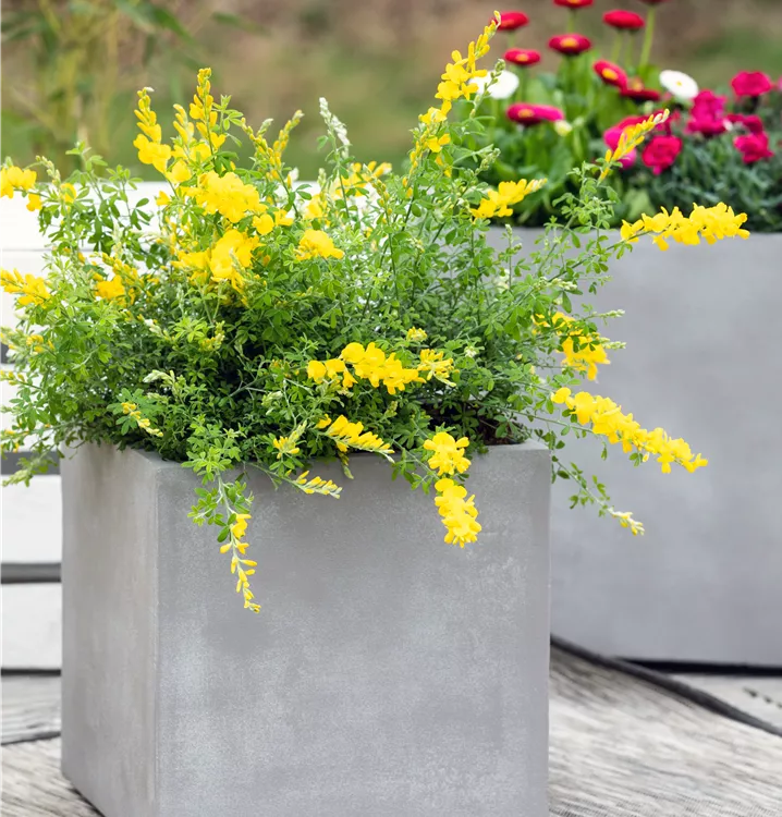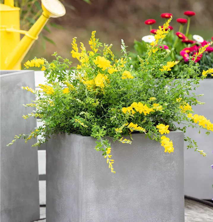 Der Ginster (Cytisus racemosus) ist eine sehr beliebte, immergrüne Kübelpflanze. Seine dekorativen Blüten erscheinen von März bis Mai. Die mittelgrünen Blätter sind lanzettlich. Der Standort sollte möglichst hell sein. Eine durchlässige und nährstoffreiche Erde ist dabei ideal. Bei günstigen Bedingungen erreicht der Ginster eine Höhe von ca. 1 m und wird bis zu 80 cm breit.