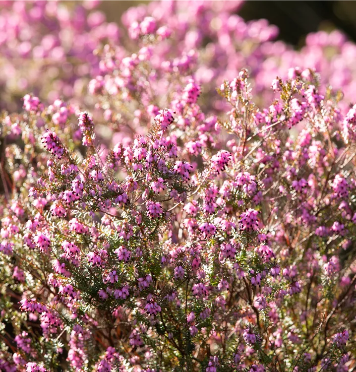 Die Schneeheide 'Winter Beauty' (Erica carnea) wird durch ihre unzähligen röhrenförmigen Blüten in Rosarot jeden Garten verschönern. Ab Februar ist es soweit und sie begeistert in Beeten, sowie in Kübeln auf Balkon oder Terrasse. Die nadelförmigen, dunkelgrünen Blätter sind ebenso ein schöner Anblick.