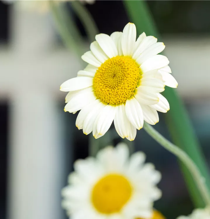 Anthemis tinctoria 'Sauce Hollandaise' bildet körbchenartige, weiße Blüten ab Juni. Diese verströmen einen angenehmen Duft.