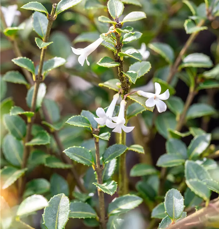 Die Delavays Duftblüte (Osmanthus delavayi) ist eine dichte Gartenpflanze, die cremeweiße Blüten mit einem starken Duft hervorbringt. Sie erscheinen von Juli bis August. An einem sonnigen bis halbschattigen Standort mit durchlässigem Boden erreicht sie gewöhnlich eine Höhe von ca. 3 m und wird ca. 3 m breit.