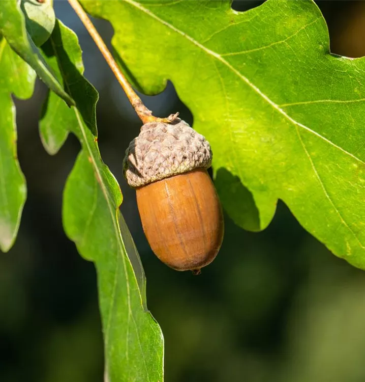 Besonders dekorativ sind die hellgrünen Früchte von Quercus robur. Diese erscheinen ab September und sind klein.