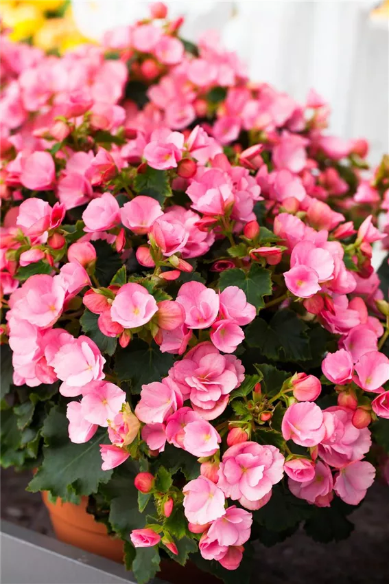 Begonia betulia 'Candy'® Begonien sind beliebte Zierpflanzen. Oftmals werden sie einjährig kultiviert, obwohl sie eigentlich mehrjährig sind. Weil die Knollen nicht frosthart sind, müssen Sie Begonien überwintern.