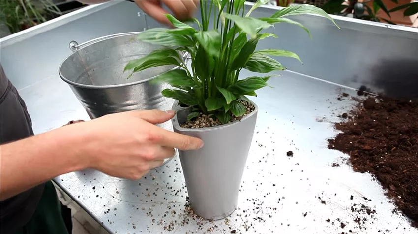 Einblatt - Einpflanzen in ein Gefäß (2) Am besten gedeiht diese beliebte Zimmerpflanze, wenn sie immer gut mit Wasser versorgt wird. Um genau diesen Punkt sicherzustellen ist das Einpflanzen in einen Blumentopf mit Wasserspeicher absolut empfehlenswert.