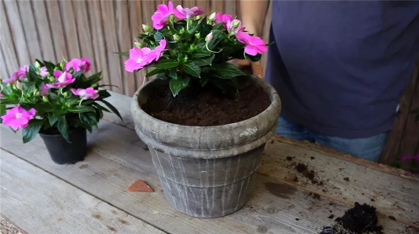 Edellieschen - Einpflanzen in ein Gefäß (1) Das Edellieschen ist mit dem traditionell-beliebten Fleißigen Lieschen verwandt, hat aber größere Blüten und etwas anders geformte Blätter.
