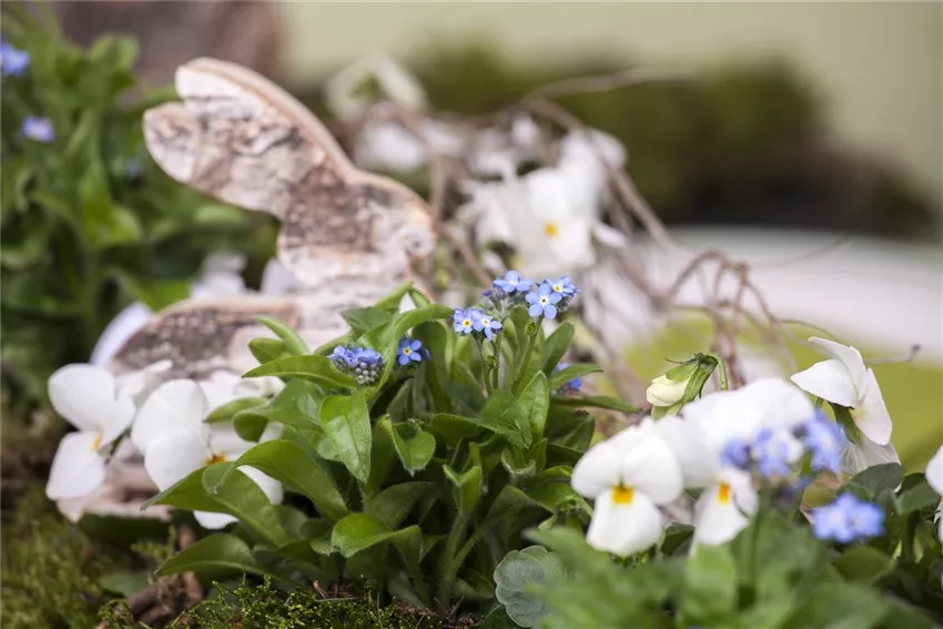 Myosotis sylvatica Ostern steht dieses Jahr im wahrsten Sinne des Wortes vor der Tür! Und weil Dekoration zu Ostern auf gar keinen Fall fehlen darf, gibt es in diesem Jahr etwas ganz Besonderes. Natürlich dürfen die Osterpflanzen schlechthin nicht fehlen.