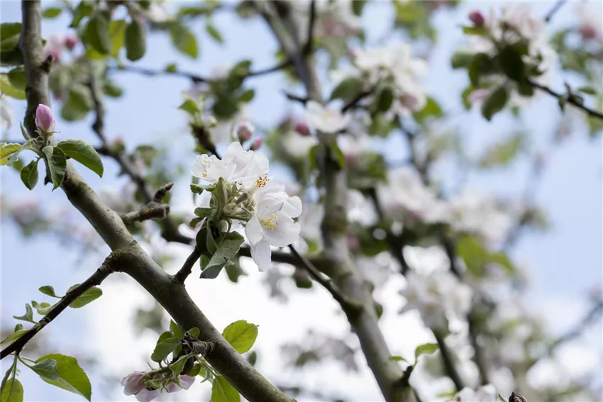 Malus domestica 'Rheinischer Bohnapfel' Um die Veredelung abzuschließen, werden Unterlage und Edelreis an der Verbindungsstelle mit Bast- oder Kreppband umwickelt und mit Baumwachs versiegelt. Auch die Spitzen des Edelreises werden mit Baumwachs versiegelt, damit es gut geschützt ist. Anderenfalls könnte es von oben auch austrocknen. Ob die Veredelung erfolgreich war oder nicht, zeigt sich dann im nächsten Frühjahr, wenn das Edelreis wieder austreibt. Allerdings braucht die Veredelung etwas Geduld, denn es kann auch passieren, dass die Veredelung nicht gleich beim ersten Versuch gelingt. Ausfälle sind bei der Veredelung von Obstbäumen ganz normal und davon sollte sich der Hobbygärtner nicht entmutigen lassen. Wenn die Veredelung geklappt hat, schlägt das Gärtnerherz umso höher und die Ergebnisse können sich sehen lassen. Allerdings lassen sich immer nur Obstbäume einer Art veredeln. An einem Kirschbaum werden nach der Veredelung also keine Birnen wachsen. Vielleicht aber Birnen an einem Apfelbaum.