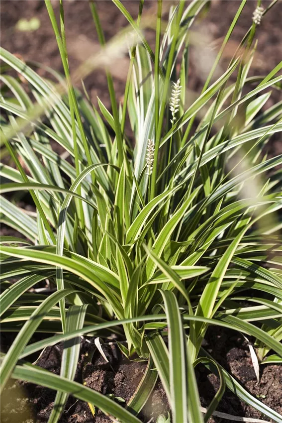 Acorus gramineus 'Variegatus' Die Ziergräser, die jetzt wunderbar im Garten blühen, können zwar im Herbst abgeschnitten werden, aber da sie mit Raureif im Winter ganz besonders schön aussehen, wäre es schade darum. Jedoch kann Regen und nasser Schnee so einiges anrichten, und den Pflanzen großen Schaden zufügen. Deshalb werden sie jetzt zusammengebunden oder an einer Stützmauer angelehnt. Bast oder Jute eignen sich gut dafür, und am Boden sollte ein wenig trockenes Laub zusätzlich vor dem Umbrechen schützen.