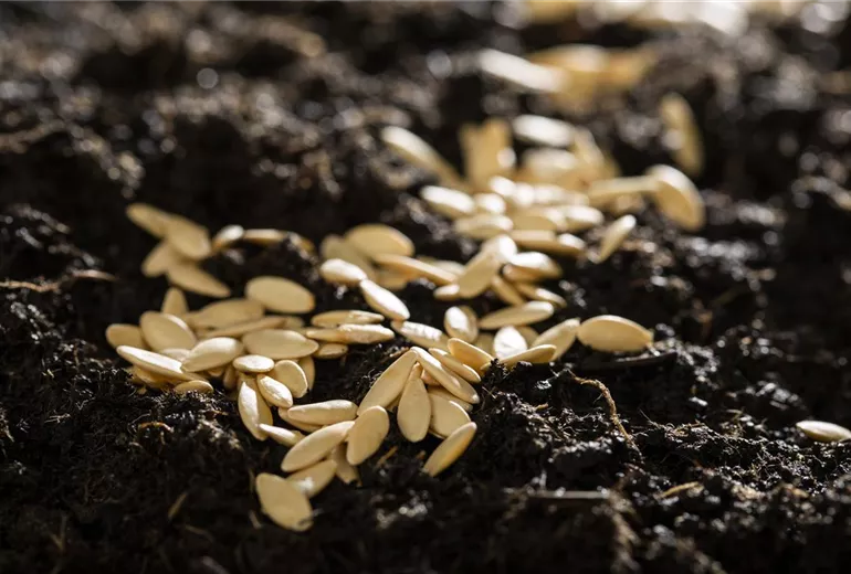 Die Samen aus Früchten wie Kürbisse, Gurken, Tomaten und anderen sollten Sie vor dem Verwahren waschen. Dazu schneiden Sie die Früchte auf und geben die Samen mit dem sie umgebenden Fruchtfleisch in ein Gefäß. Setzen Sie das gleiche Volumen an Wasser dazu und lassen die Masse für 2-3 Tage stehen. Durch diese Prozedur löst sich die Schutzhülle des Samens auf und er ist fertig für die anschließende Trocknung. Die trockenen Samen gut beschriften und wieder luftdicht bis zur Aussaat aufbewahren.