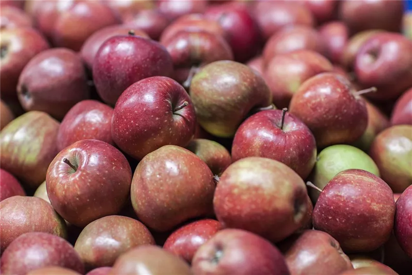 Malus domestica 'Jonagored' Im Juni lassen viele Apfel-und Birnensorten einen Teil ihrer Früchte fallen, um die anderen gut zur Reife zu bringen. Manche Sorten sind hier aber im Nachteil – sie lösen sich nicht von den schwachen Früchten. Daher ist es bei diesen Bäumen von Vorteil, wenn helfend eingegriffen wird und kleine Früchte abgenommen werden. So sind die anderen dann größer und auch aromatischer.
