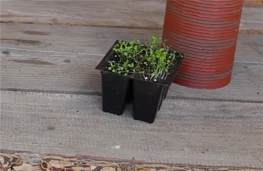 Blaukissen - Pikieren (5) In der Gitterbox können die frisch pikierten Blaukissen nun an einen hellen warmen Standort zum Weiterwachsen gebracht werden. Hierfür eignet sich ein Frühbeet oder ein Gewächshaus im Garten besonders gut. Die kleinen Stauden können alternativ auch auf eine Fensterbank gestellt werden. Stellen Sie dann unter die Gitterbox eine Kunststoffwanne, in die das abfließende Wasser tropfen kann.