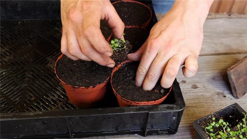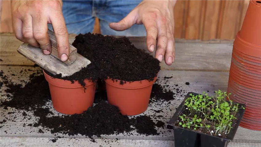 Blaukissen - Pikieren (2) Befüllen Sie die Pflanztöpfe randvoll mit Anzuchterde. Diese eignet sich durch ihre feine Struktur sowie eine gute Strukturstabilität besonders gut für junge Pflanzen.