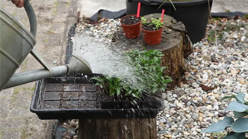 Funkien - Teilen und Einpflanzen (6) Die fertig geteilten und getopften Pflanzen sollten Sie anschließend kräftig angießen.