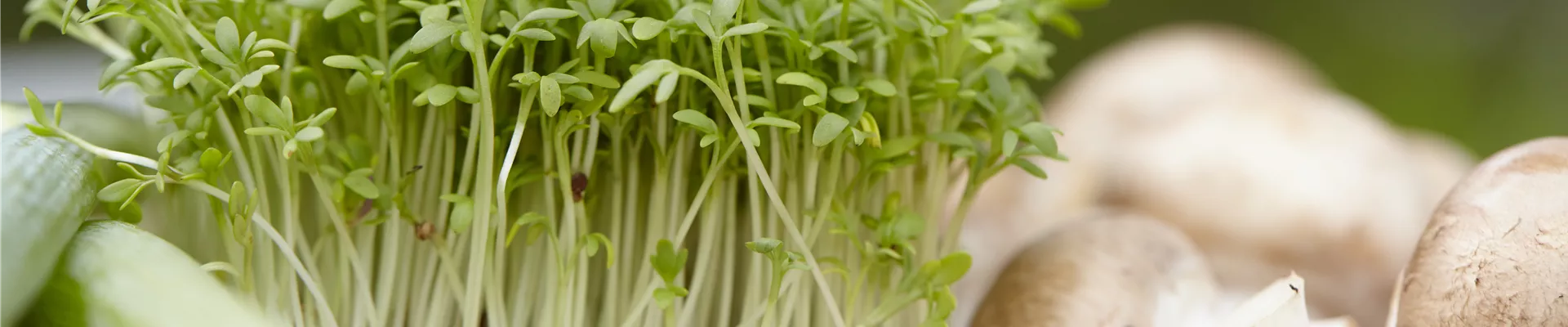 Wenn die Tage im Winter kurz und dunkel sind, gibt es nichts Schöneres als frisches Grün. Draußen ist es für die meisten Gemüsearten schon zu kalt, aber auch auf der Fensterbank können Sie für frische Vitamine sorgen: Kaufen Sie sich Kresse-Samen und füllen Sie eine Schale flach mit Erde. Drauf werden die Kresse-Samen ausgesät. Diese keimen innerhalb weniger Tage. Die Samen können alternativ auch auf angefeuchteter Watte oder Küchenkrepp ausgesät werden. Geerntet wird sobald die ersten richtigen Blätter ausgebildet sind. Sie können damit zum Beispiel ihren Salat oder Frühstücksbrötchen verfeinern.