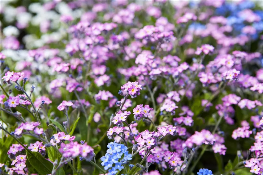 Myosotis sylvatica Im Schatten, unter Bäumen oder hinter Hecken sind bodendeckende Stauden geeignet, wie der Haselwurz, der etwa zehn Zentimeter hoch wächst und von April bis Mai blüht. Um eine geschlossene Pflanzendecke zu bekommen, sollte man 15 bis 20 Pflanzen pro Quadratmeter planen, da er recht langsam wächst. An schattigen Orten ohne Mittagssonne wächst das sommergrüne Kaukasus-Vergissmeinnicht. Diese Staude mit sehr schönen Blättern wird bis zu 40 Zentimeter hoch und blüht im April und Mai. Von dieser Pflanze reichen fünf bis acht Exemplare auf einem Quadratmeter. Das Lungenkraut fühlt sich ebenfalls im Schatten oder Halbschatten wohl. Es blüht auch im April und Mai und wird etwa 40 Zentimeter hoch. Für einen dichten Wuchs werden 10 bis 15 Pflanzen pro Quadratmeter benötigt.