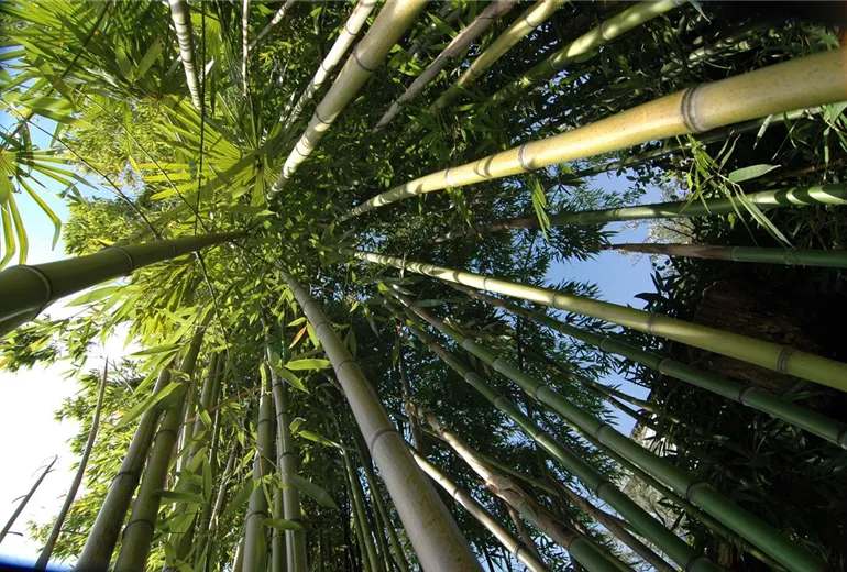 Der immergrüne Bambus wird als Hecke und Sichtschutz immer beliebter. Er wächst rasch und kann je nach Sorte und Klima bis zu 20 Meter hoch werden.